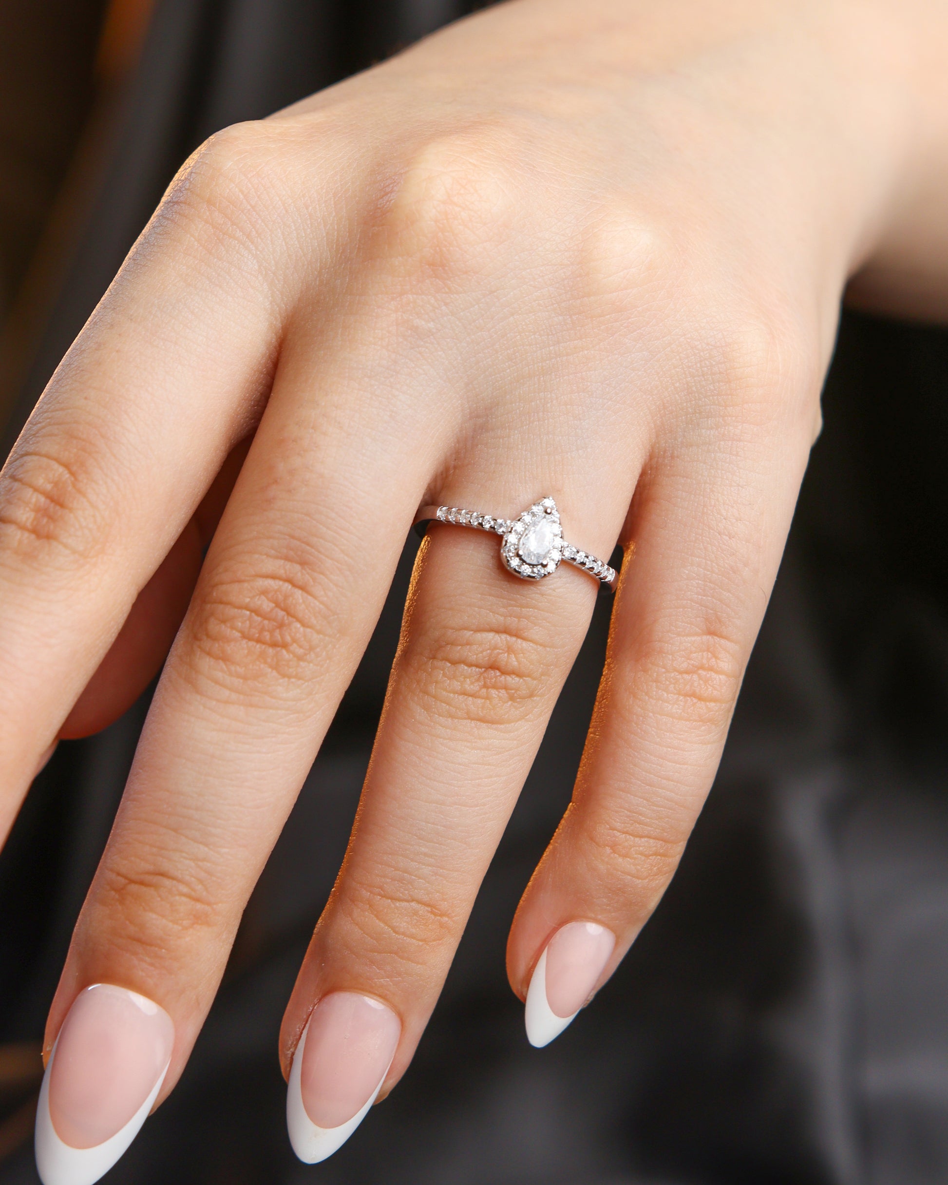 Symbole de pureté et de douceur, la Bague Larmes d’Éclat met en valeur une pierre centrale en forme de goutte, sublimée par un halo scintillant de zircons. Raffinée et féminine, elle capture la lumière avec une grâce intemporelle.