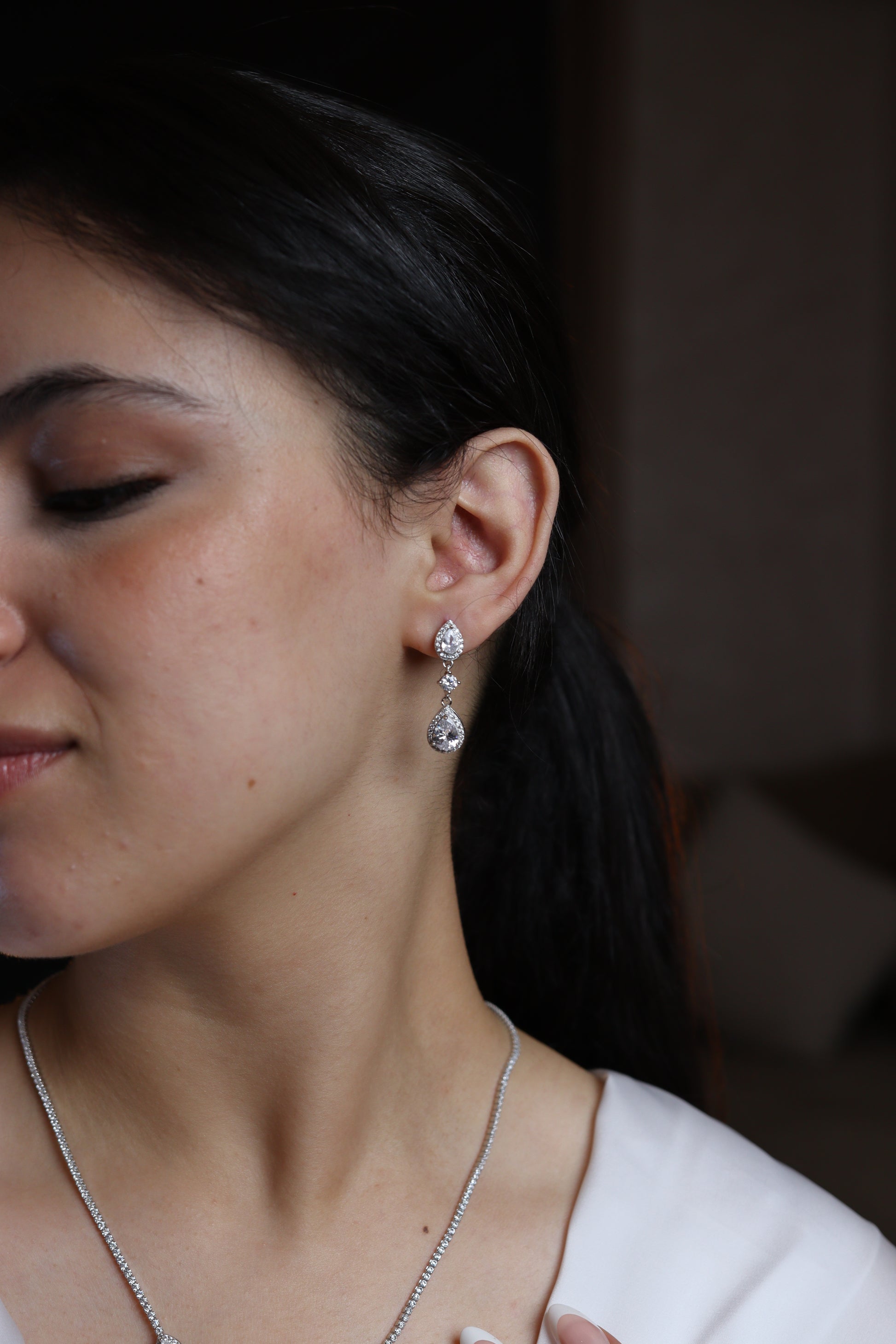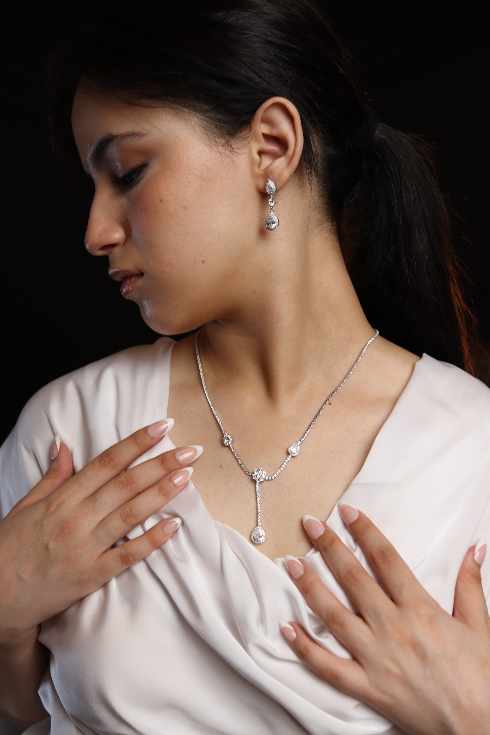 Conçu avec un éclat argenté et des pierres délicates, cet ensemble capture la pure lumière du raffinement. Parfait pour les moments d’amour, de célébration et de beauté éternelle.